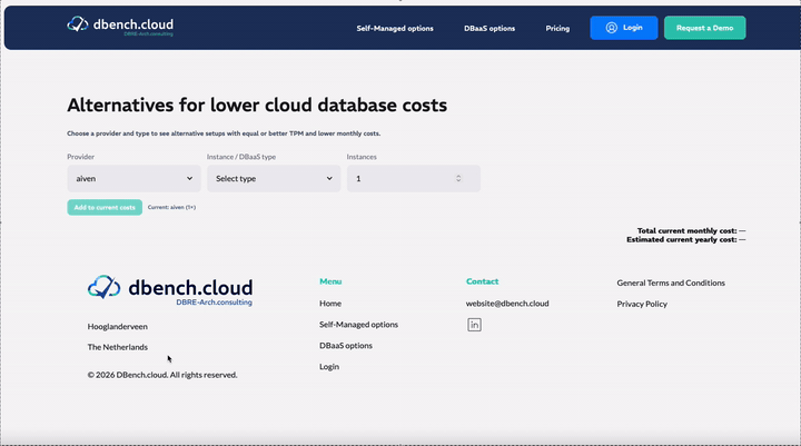 DBench.cloud also provides "DBRE optimized" setups, to give a maximum performance and efficiency for your costs, based on repeatable cloud database benchmark runs across different architectures.